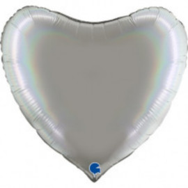 Фольга серце 36" Голографічний платиновий Срібний (в інд. уп.) Grabo
