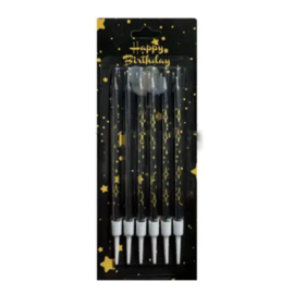 Свічки прямі чорні із золотими зірками (6 шт)