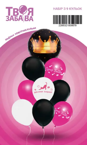 Набір латексних кульок (CROWN GIRL) Повітряні кулі з малюнком підходять для надування повітрям і гелієм. Купити за оптовими цінами набір латексних кульок ТМ "Твоя Забава", можна в нашому інтернет-магазині. У набір входить:-фольгована кулька 1 шт.-однот...