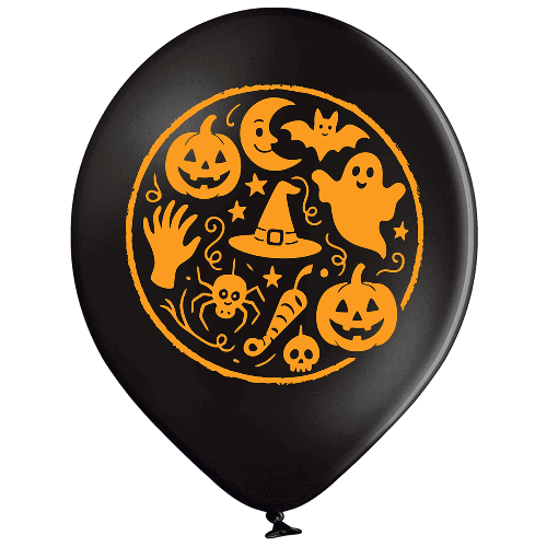 Повітряні кулі 12" BelBal з малюнком "Веселий Гелловін" Повітряні кулі підходять для надування повітрям і гелієм, а також для аеродизайну. Яскраві кулі 12" BelBal довго літають з гелієм. Купити за оптовими цінами кулі 12" з малюнком, можна в нашому інт...