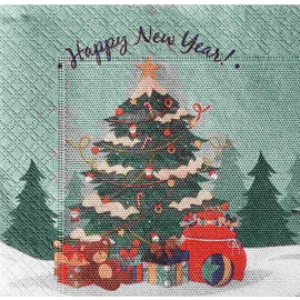 Серветки новорічні "HNY ялинка з подарунками на м'ятному" (33х33) (20 штук)