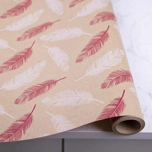 Папір пакувальний для подарунків "З пір'ям" Стильний дизайн для пакування подарунків. Замовляй за низькою ціною подарунковий папір в нашому інтернет-магазині. Розмір - 1000х70 см.