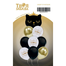 Набір повітряних кульок "Чорна кішечка" ТМ "Твоя Забава" (9 шт.)