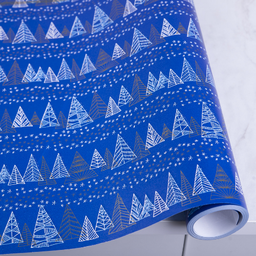 Папір пакувальний для подарунків "синій з ялинками" Стильний дизайн для пакування подарунків. Замовляй за низькою ціною подарунковий папір в нашому інтернет-магазині. Розмір - 1000х70 см.