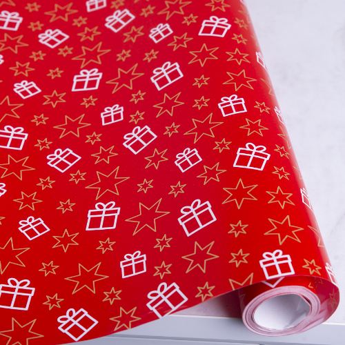 Папір пакувальний для подарунків "подарунки + зірки" Стильний дизайн для пакування подарунків. Замовляй за низькою ціною подарунковий папір в нашому інтернет-магазині. Розмір - 1000х70 см.