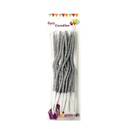 Свічки виті Срібні з блискітками (12 шт) Відмінний декор для святкових тортів на День Народження. Яскраві свічки в торт. Купити свічки на торт можна в нашому інтернет-магазині. Колір: срібний з блискітками. Упаковка: індивідуальна.