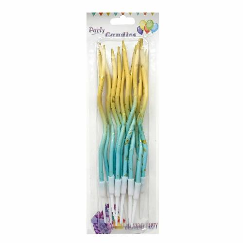 Свічки виті омбре Жовто-Блакитне з золотими краплями (12 шт) Відмінний декор для святкових тортів на День Народження. Яскраві свічки в торт. Купити свічки в золотому стилі на торт можна в нашому інтернет-магазині. Колір: омбре жовто-блакитне з золотими...