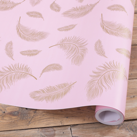 Папір подарунковий "Золоте пір'я на рожевому" 70см*10м