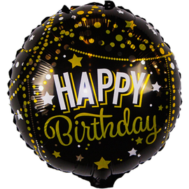 Фольга 18" (45см) "Happy birthday Золото на чорному" (Китай)