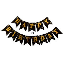 Гірлянда літери Happy Birthday чорна з золотими зірками