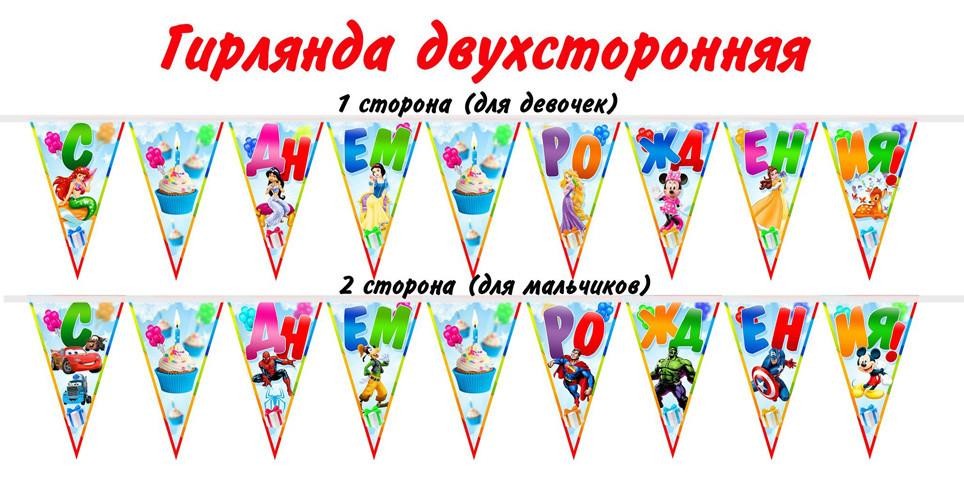 Гирлянда вымпел бумажная "С Днем Рождения" (двойная) для тематического дня рождения Яркая, красочная гирлянда вымпел - необходимый аксессуар для празднования детского дня рождения, вечеринки и других праздников. Стильный дизайн с мультяшными героями пр...