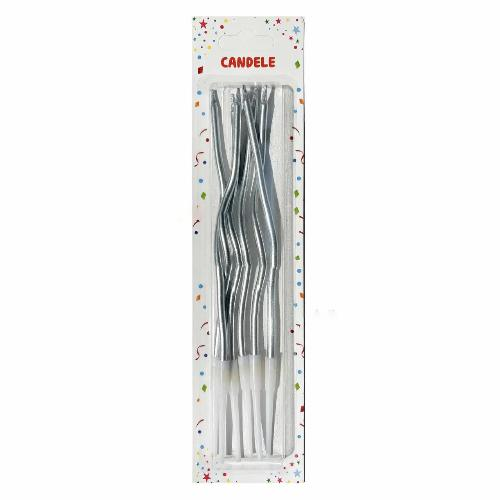 Свічки виті Срібло (6 шт) Відмінний декор для святкових тортів на День Народження. Яскраві свічки в торт. Купити свічки на торт можна в нашому інтернет-магазині. Колір: срібний. Упаковка: індивідуальна.