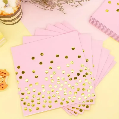 Дитячі святкові серветки "Рожеві золотий горох" Відмінний декор сервірування столу для святкування дитячого дня народження. Святкові серветки виготовлені в яскравому та стильному дизайні, є незамінною частиною на дитячому дні народження, вечірках та ін...