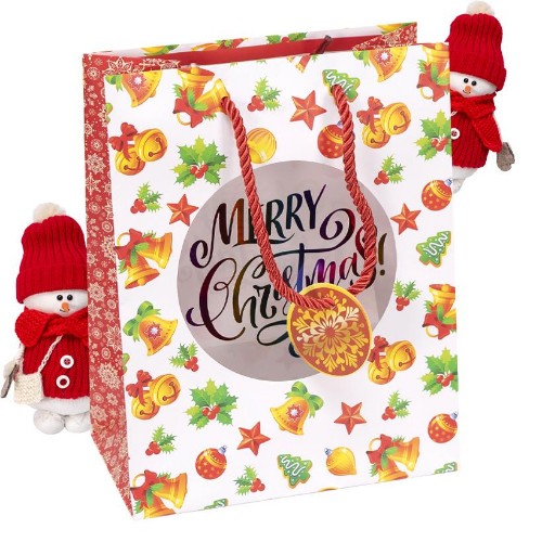 Пакет подарунковий "Merry christmas дзвіночки" 18х23х10 см Пакети з новорічним принтом - чудова ідея для пакування подарунків.Ціна за одну штуку. Необхідний дизайн вказуйте в коментарях до замовлення!
