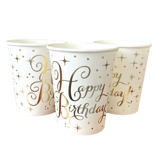 Стаканчики на день народження Happy Birthday золото для тематичного дня народження.Відмінний декор для святкування дитячого дня народження. В упаковці - 10 штук. Ціна за упаковку. Обсяг - 250 мл.