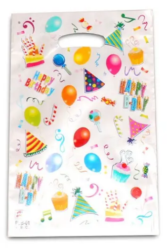 Купити дитячі подарункові пакети можна у нашому інтернет-магазині. Подарункові пакети для дітей є ще однією частиною дитячого дня народження у тематиці Happy birth day. Матеріал - поліетилен Виробництво - Китай Розмір 30*21см