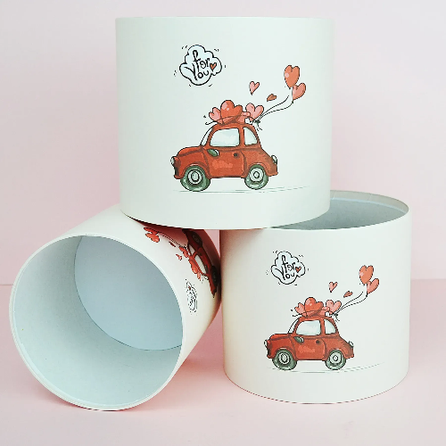 Капелюшна коробка для квітів середня "Happy Day" Стильні, вмісткі, круглі коробки для квітів або під Bubbles, стануть невід'ємню складовою вашої композиції. Флористичні коробки в асортименті за низькою ціною можна замовити у нашому інтернет-магазині.Ді...