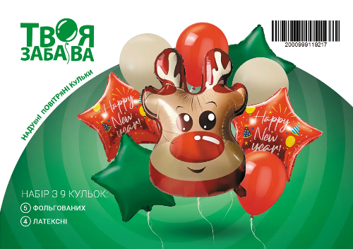 Набір латексних кульок (Різдвяний олень) Повітряні кулі з малюнком підходять для надування повітрям і гелієм. Купити за оптовими цінами набір латексних кульок ТМ "Твоя Забава", можна в нашому інтернет-магазині. У набір входить: -фольговані кульки 2 шт....
